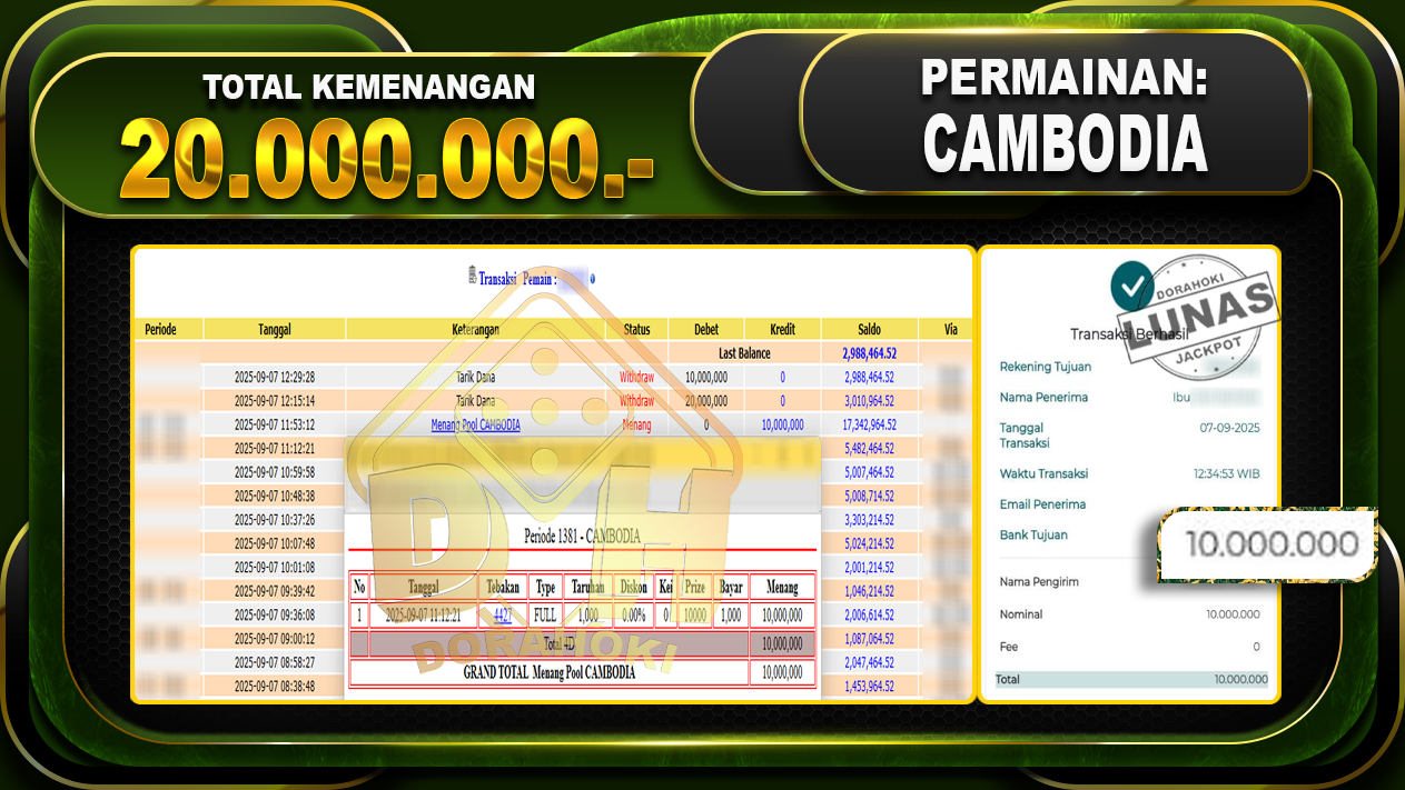 Bukti JP TOGEL CAMBODIA – ucapkan selamat kepada user id Mixxxx atas kemenangan di TOGEL CAMBODIA dengan total kemenangan Rp.20,000,000,- Yang pasti nya langsung LUNAS sesuai bukti ya bosku. Dorahoki nih bosku berapapun akan tetap kami bayar lunas ya bosku