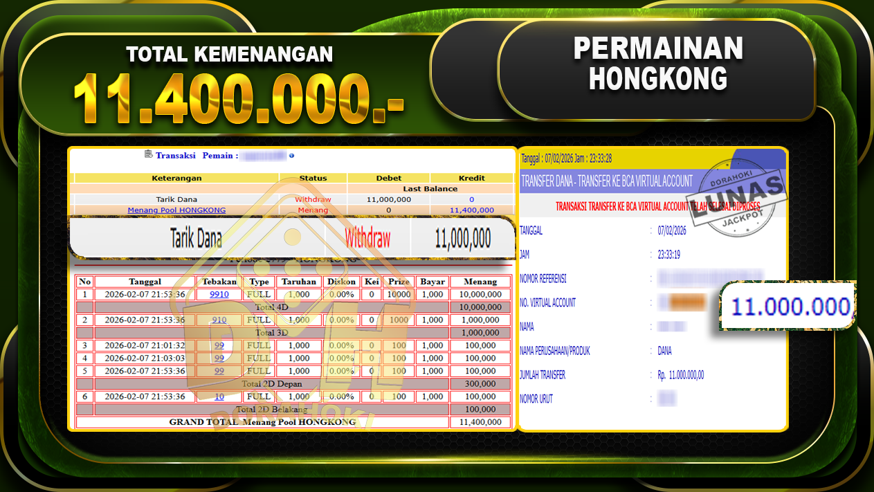DORAHOKI NIH BOSKU! MENANG BERAPAPUN PASTI KAMI BAYAR LUNAS!!