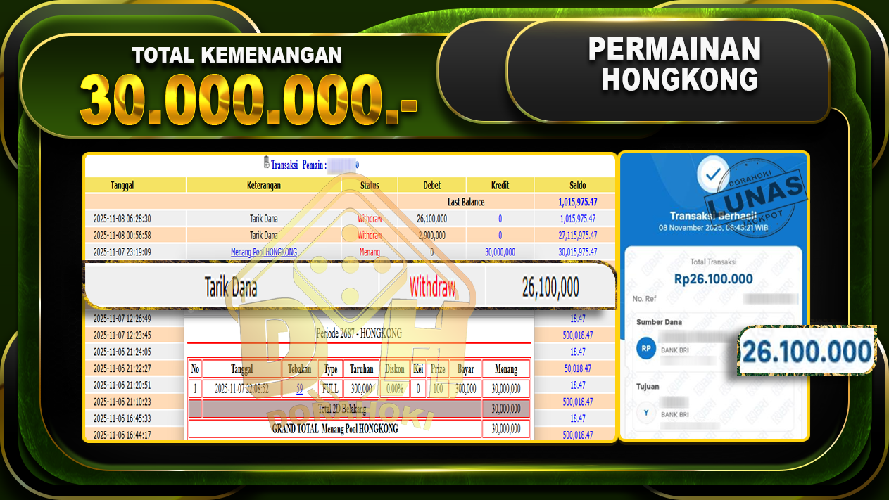 Bukti JP TOGEL HONGKONG – Yang kami berikan ini sah dan real tanpa di rekayasa bosku dan hanya bertujuan untuk meningkatkan kepercayaan member kami dan memberikan kenyamanan saat bermain jadi bosku tidak perlu khawatir MENANG BERAPAPUN PASTI KAMI BAYAR LUNAS!!