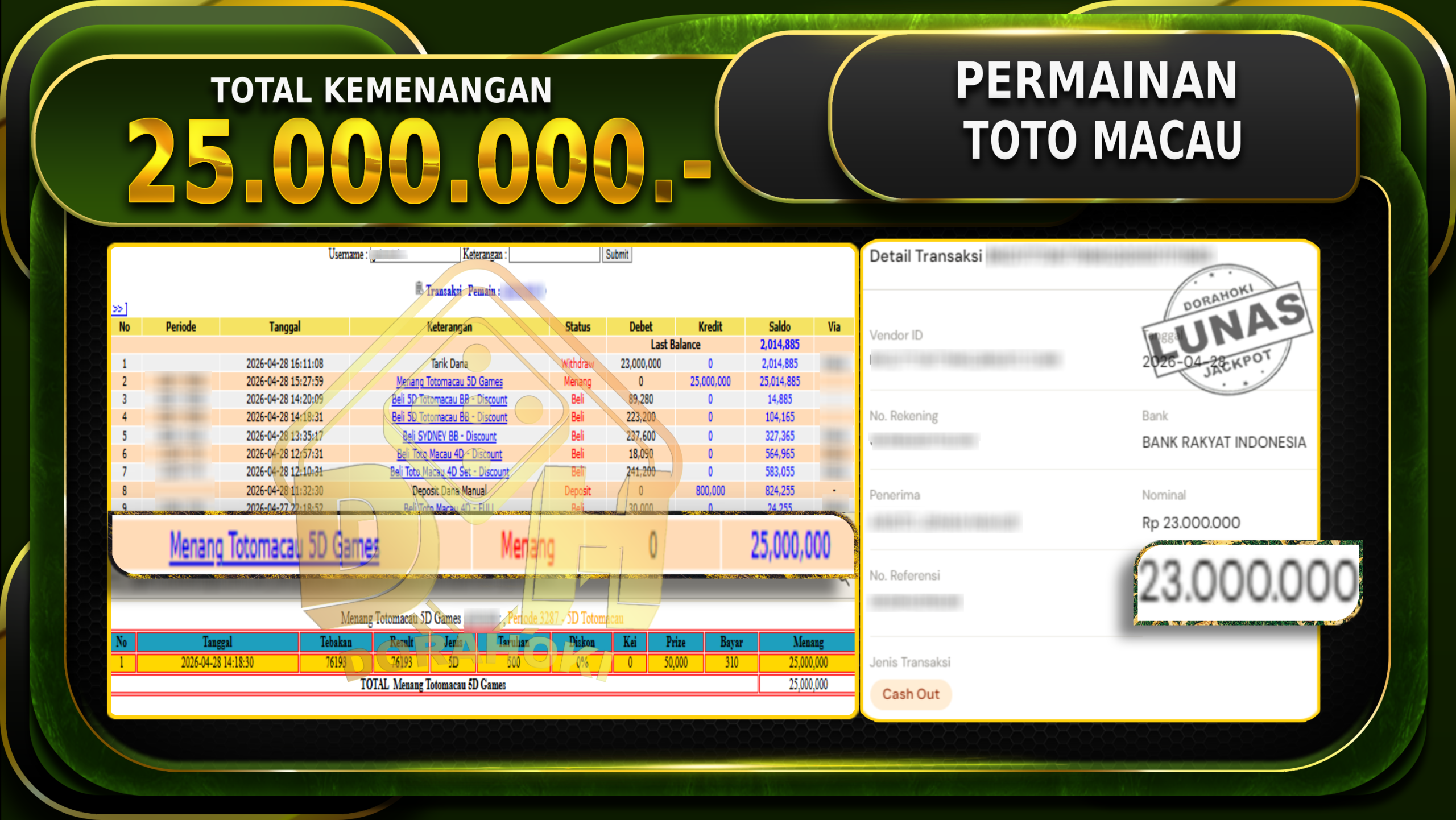 Kemenangan Berapapun Situs DoraHoki Akan Membayar Lunas ya