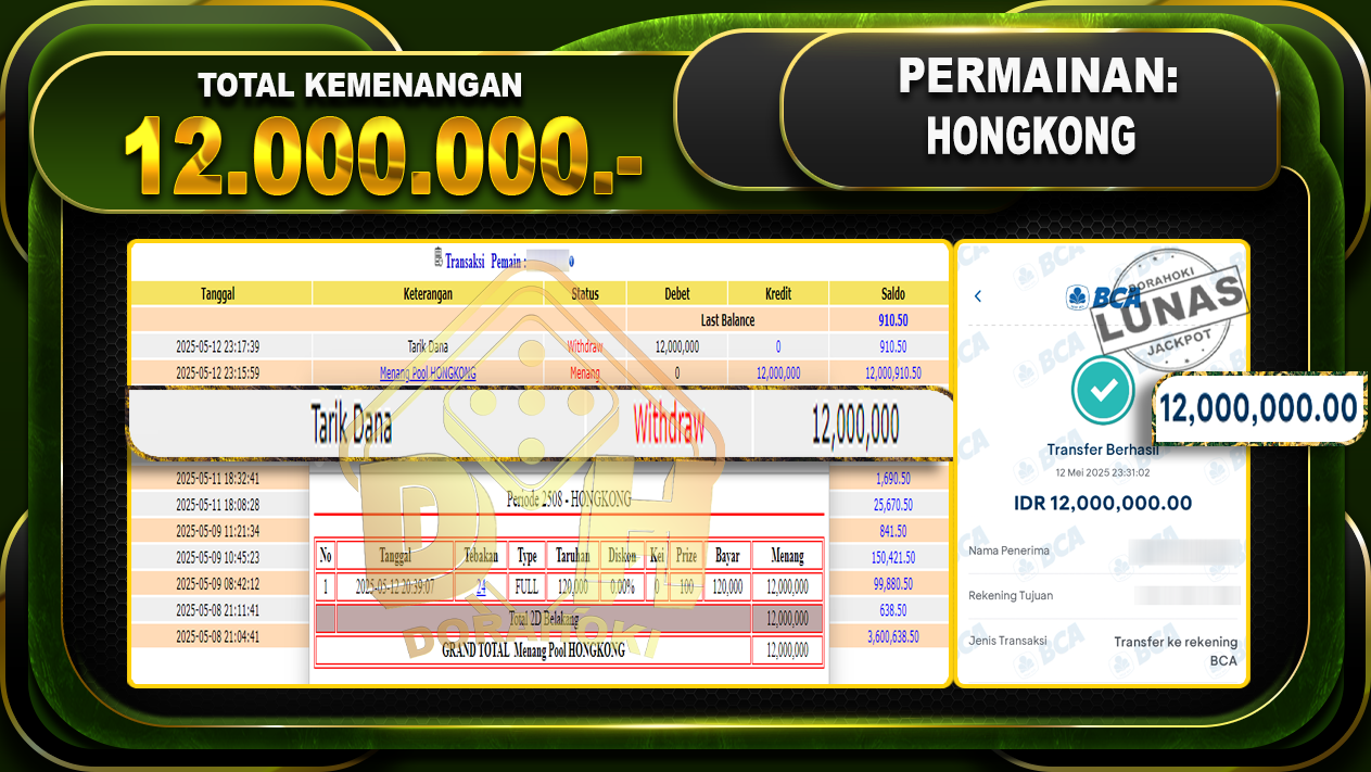 DORAHOKI NIH BOSKU! MENANG BERAPAPUN PASTI KAMI BAYAR LUNAS!!