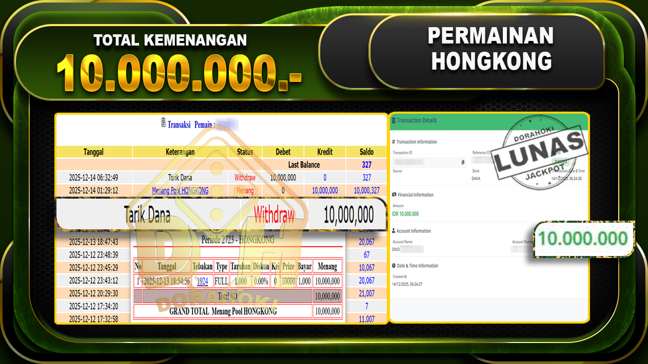 Bukti JP TOGEL HONGKONG – ucapkan selamat kepada user id inuxxx atas kemenangan di TOGEL HONGKONG dengan total kemenangan Rp.10,000,000,- . Yang pasti nya langsung LUNAS sesuai bukti ya bosku. Dorahoki nih bosku berapapun akan tetap kami bayar lunas ya bosku.