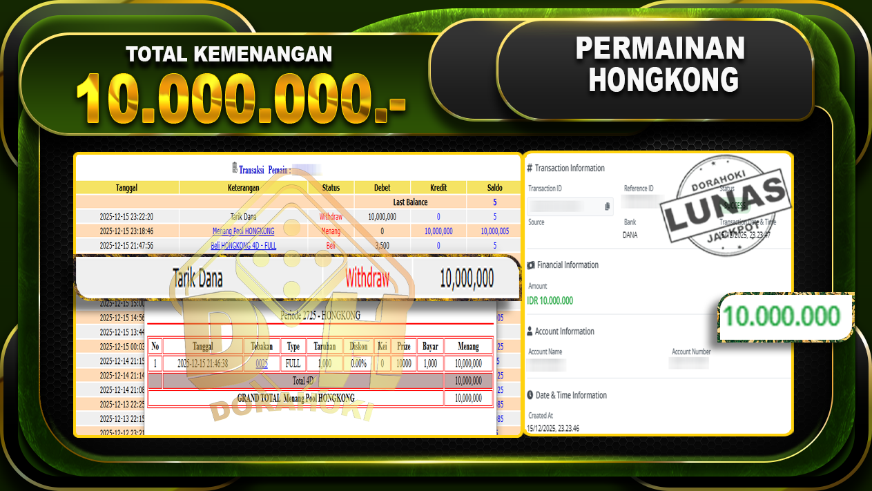 Bukti JP TOGEL HONGKONG – Yang kami berikan ini sah dan real tanpa di rekayasa bosku dan hanya bertujuan untuk meningkatkan kepercayaan member kami dan memberikan kenyamanan saat bermain jadi bosku tidak perlu khawatir MENANG BERAPAPUN PASTI KAMI BAYAR LUNAS!!