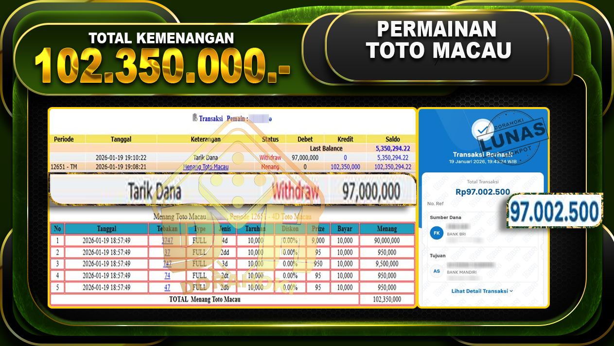 Bukti JP TOGEL HONGKONG – Yang kami berikan ini sah dan real tanpa di rekayasa bosku dan hanya bertujuan untuk meningkatkan kepercayaan member kami dan memberikan kenyamanan saat bermain jadi bosku tidak perlu khawatir MENANG BERAPAPUN PASTI KAMI BAYAR LUNAS!!