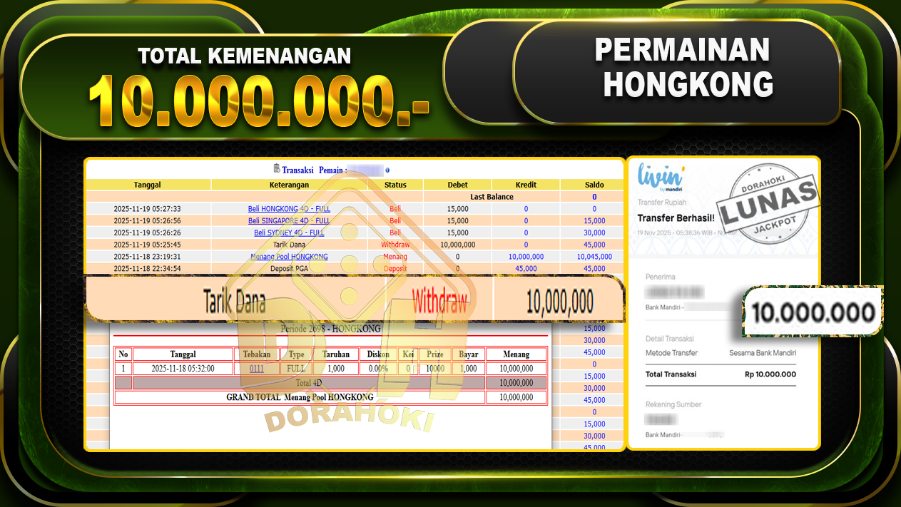 DORAHOKI NIH BOSKU! MENANG BERAPAPUN PASTI KAMI BAYAR LUNAS!!