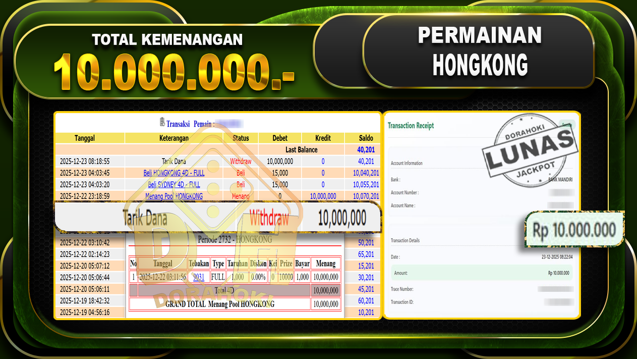 DORAHOKI NIH BOSKU! MENANG BERAPAPUN PASTI KAMI BAYAR LUNAS!!