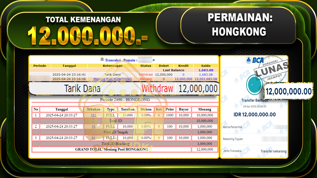 DORAHOKI NIH BOSKU! MENANG BERAPAPUN PASTI KAMI BAYAR LUNAS!!