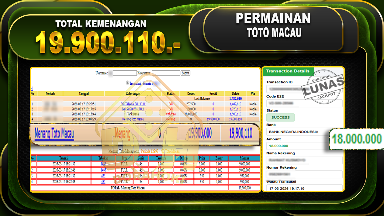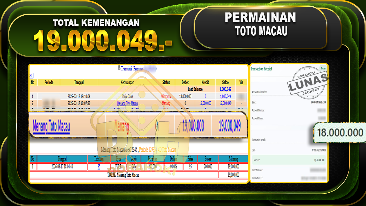 DORAHOKI NIH BOSKU! MENANG BERAPAPUN PASTI KAMI BAYAR LUNAS!!