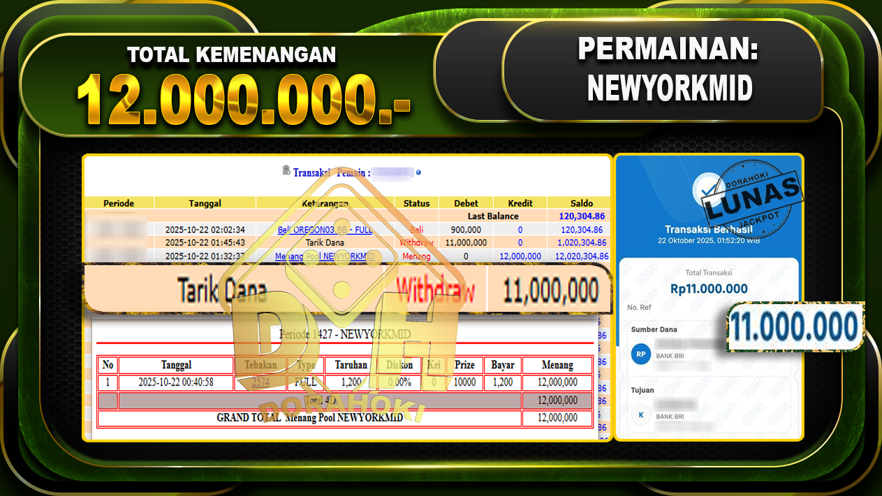 Bukti JP TOGEL NEWYORKMID – Yang kami berikan ini sah dan real tanpa di rekayasa bosku dan hanya bertujuan untuk meningkatkan kepercayaan member kami dan memberikan kenyamanan saat bermain jadi bosku tidak perlu khawatir MENANG BERAPAPUN PASTI KAMI BAYAR LUNAS!!
