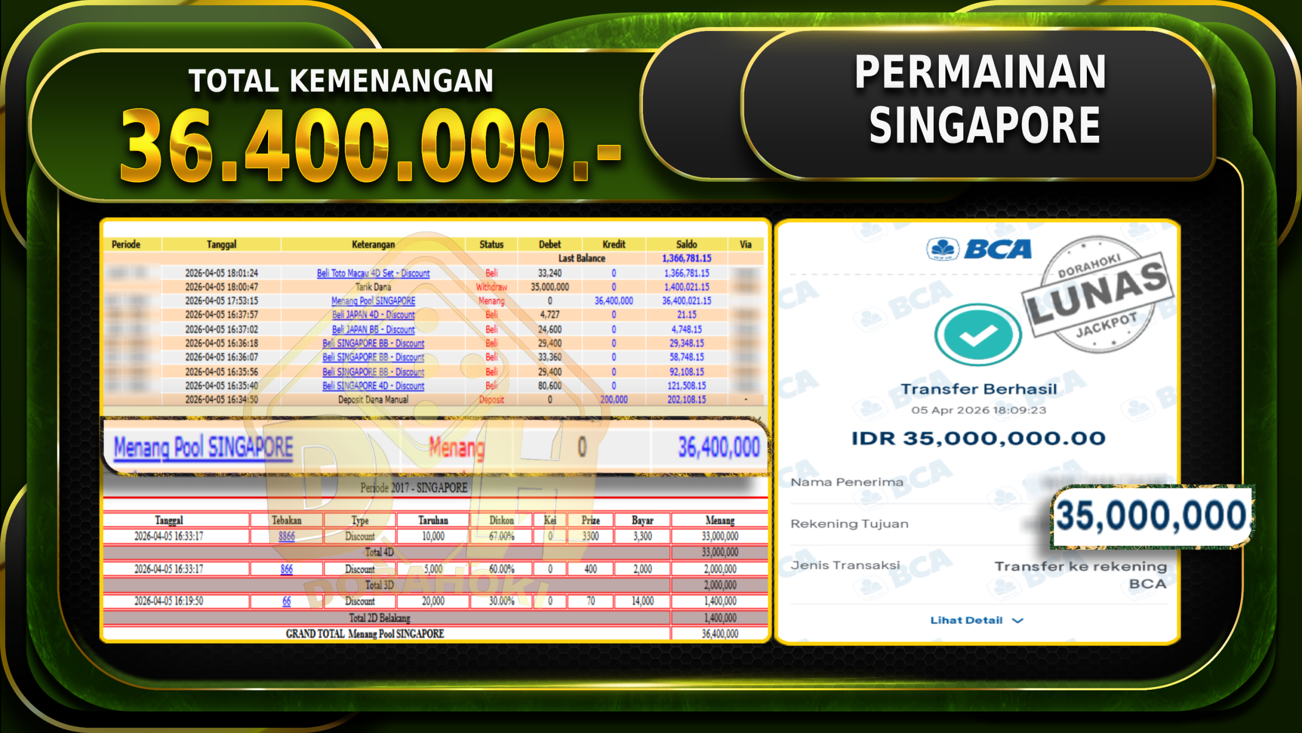 DORAHOKI NIH BOSKU! MENANG BERAPAPUN PASTI KAMI BAYAR LUNAS!!
