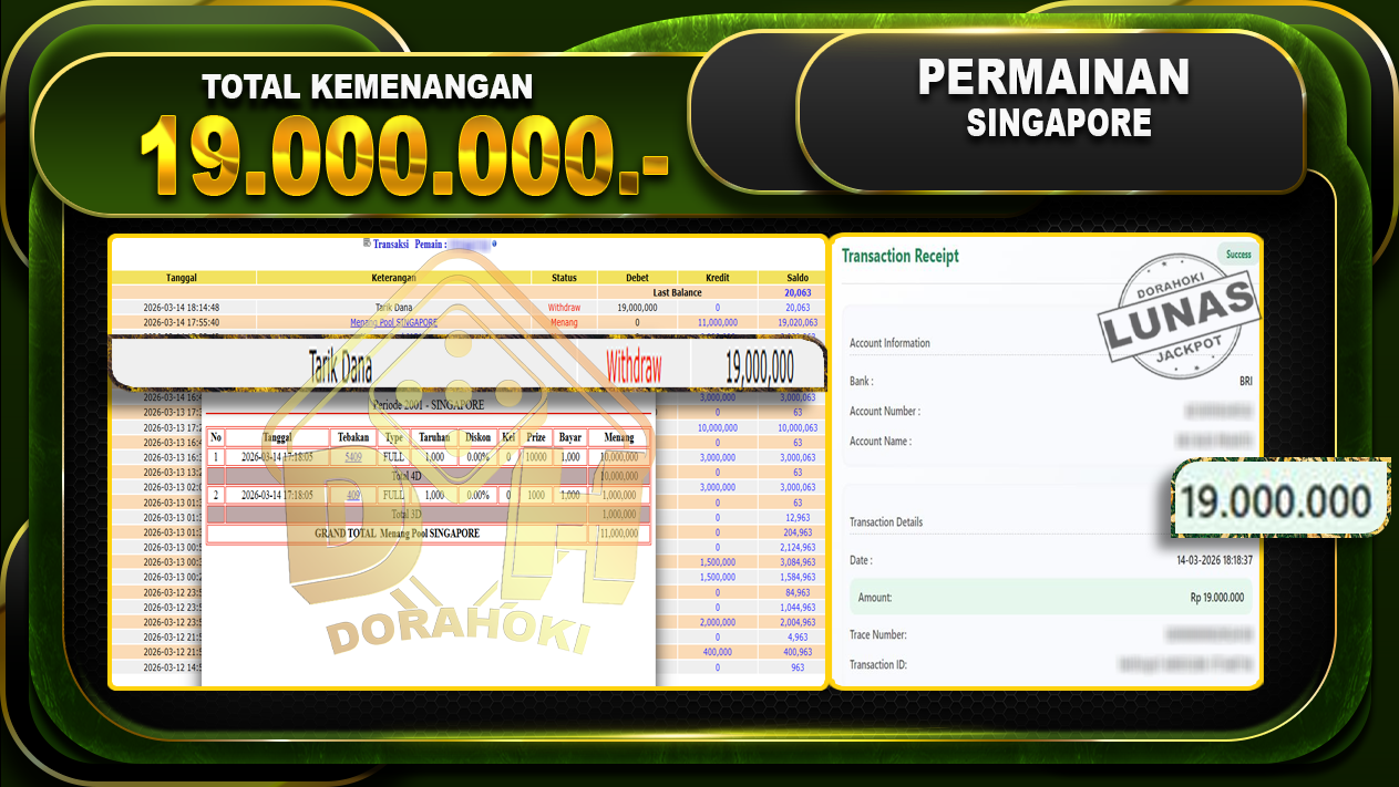 Bukti JP TOGEL SINGAPORE – Selamat Kepada User ID : Elaxxx atas kemenangan TOGEL SINGAPORE Dengan Nominal Sebesar Rp. 19.000.000,- . Yang pasti nya langsung LUNAS Sesuai Bukti.