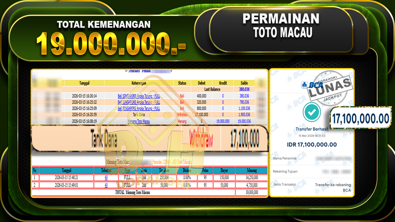 Bukti JP TOGEL SINGAPORE – Yang kami berikan ini sah dan real tanpa di rekayasa bosku dan hanya bertujuan untuk meningkatkan kepercayaan member kami dan memberikan kenyamanan saat bermain jadi bosku tidak perlu khawatir MENANG BERAPAPUN PASTI KAMI BAYAR LUNAS!!