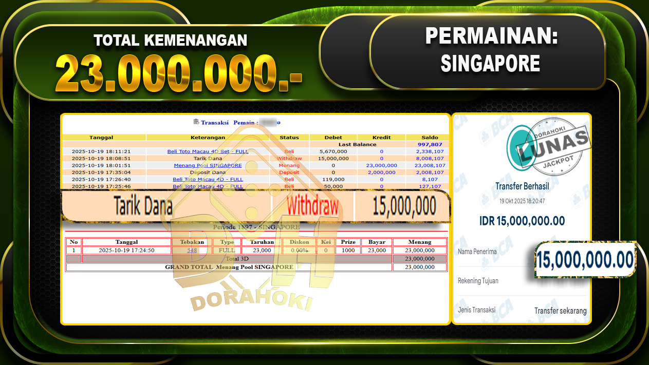 DORAHOKI NIH BOSKU! MENANG BERAPAPUN PASTI KAMI BAYAR LUNAS!!