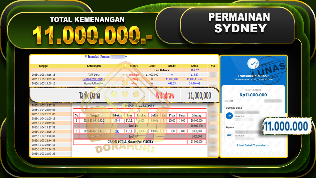 Bukti JP TOGEL SYDNEY – ucapkan selamat kepada user id batxxxxx atas kemenangan di TOGEL SYDNEY dengan total kemenangan Rp.11,000,000,- Yang pasti nya langsung LUNAS sesuai bukti ya bosku. Dorahoki nih bosku berapapun akan tetap kami bayar lunas ya bosku