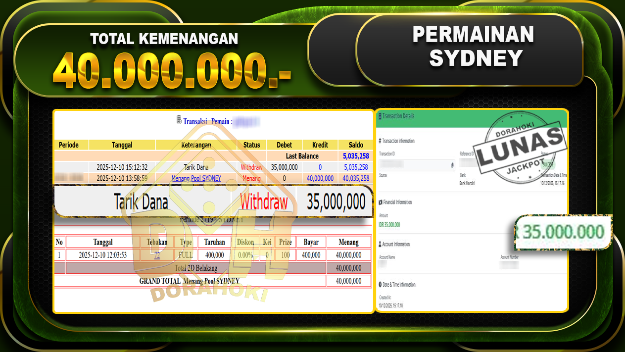 DORAHOKI NIH BOSKU! MENANG BERAPAPUN PASTI KAMI BAYAR LUNAS!!