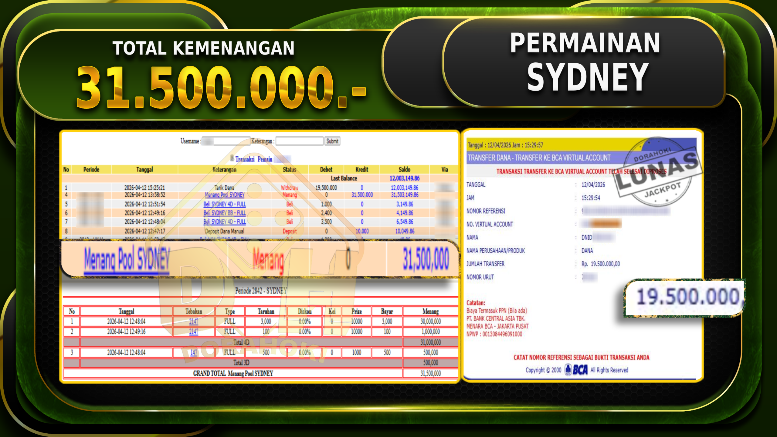 DORAHOKI NIH BOSKU! MENANG BERAPAPUN PASTI KAMI BAYAR LUNAS!!