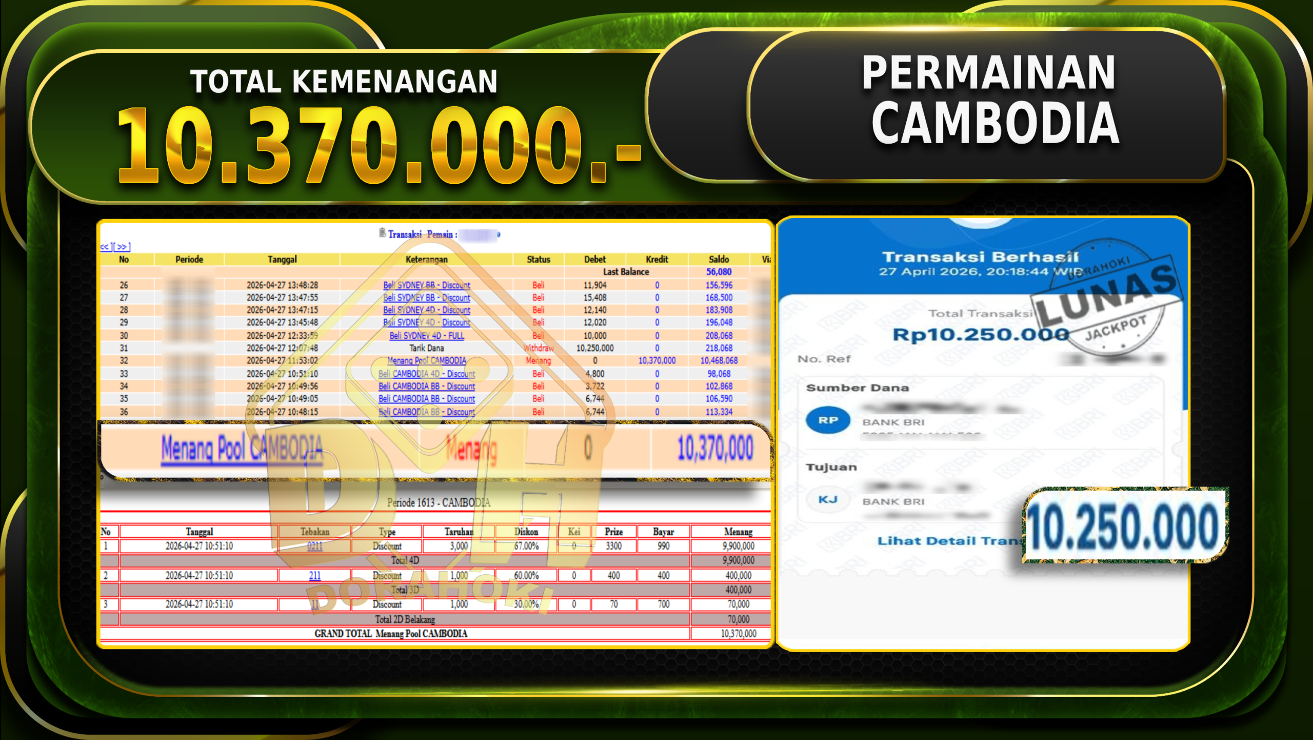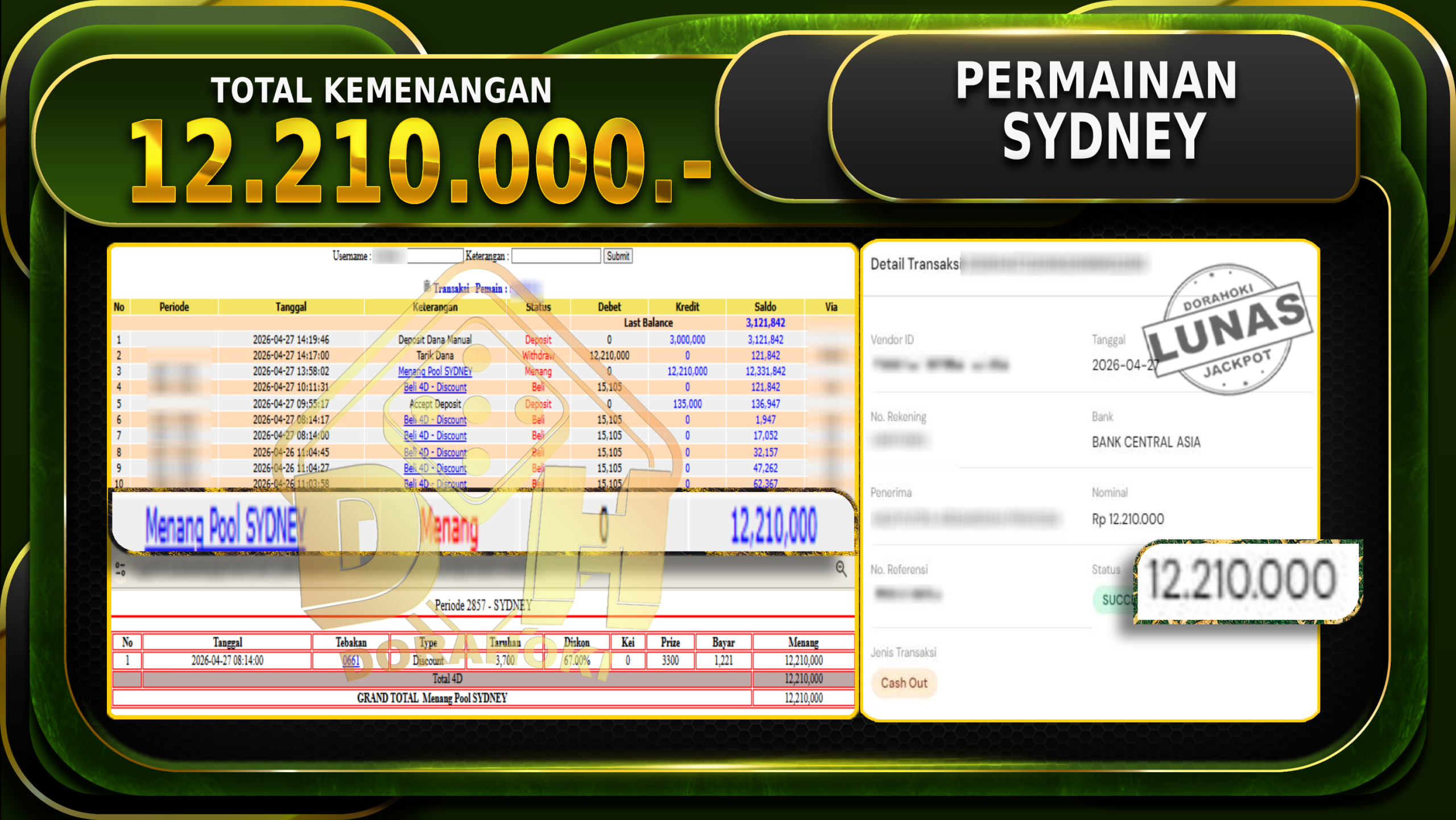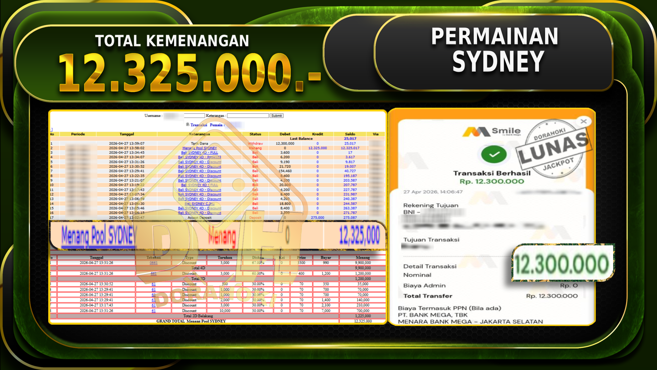 Bukti JP TOGEL SYDNEY – Selamat Kepada User ID : Rijxxx atas kemenangan TOGEL SYDNEY Dengan Nominal Sebesar Rp 12.159.000,- . Yang pasti nya langsung LUNAS Sesuai Bukti.