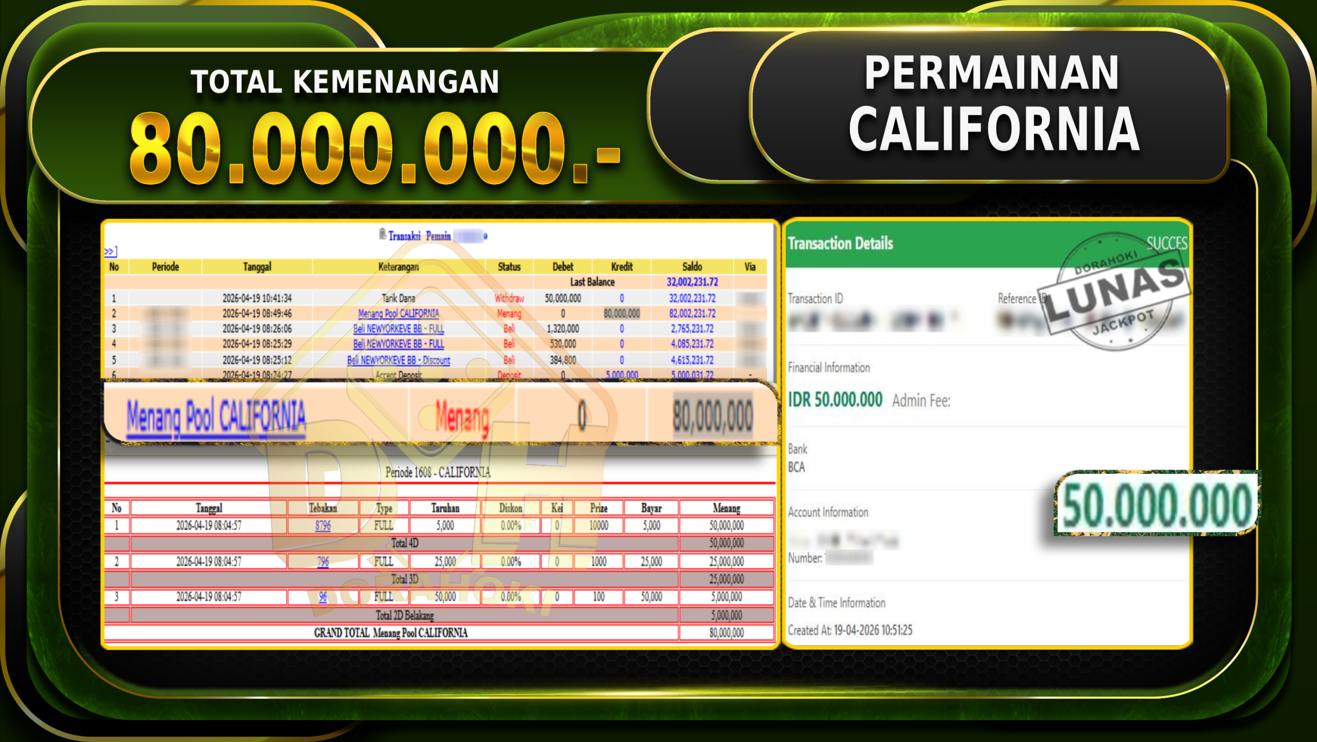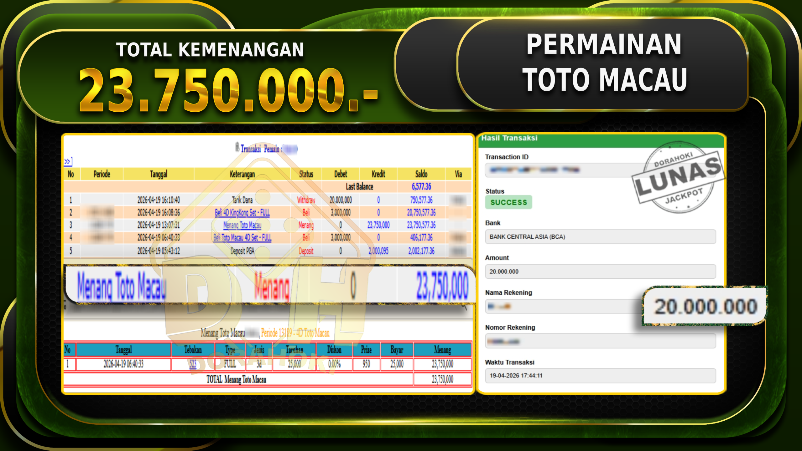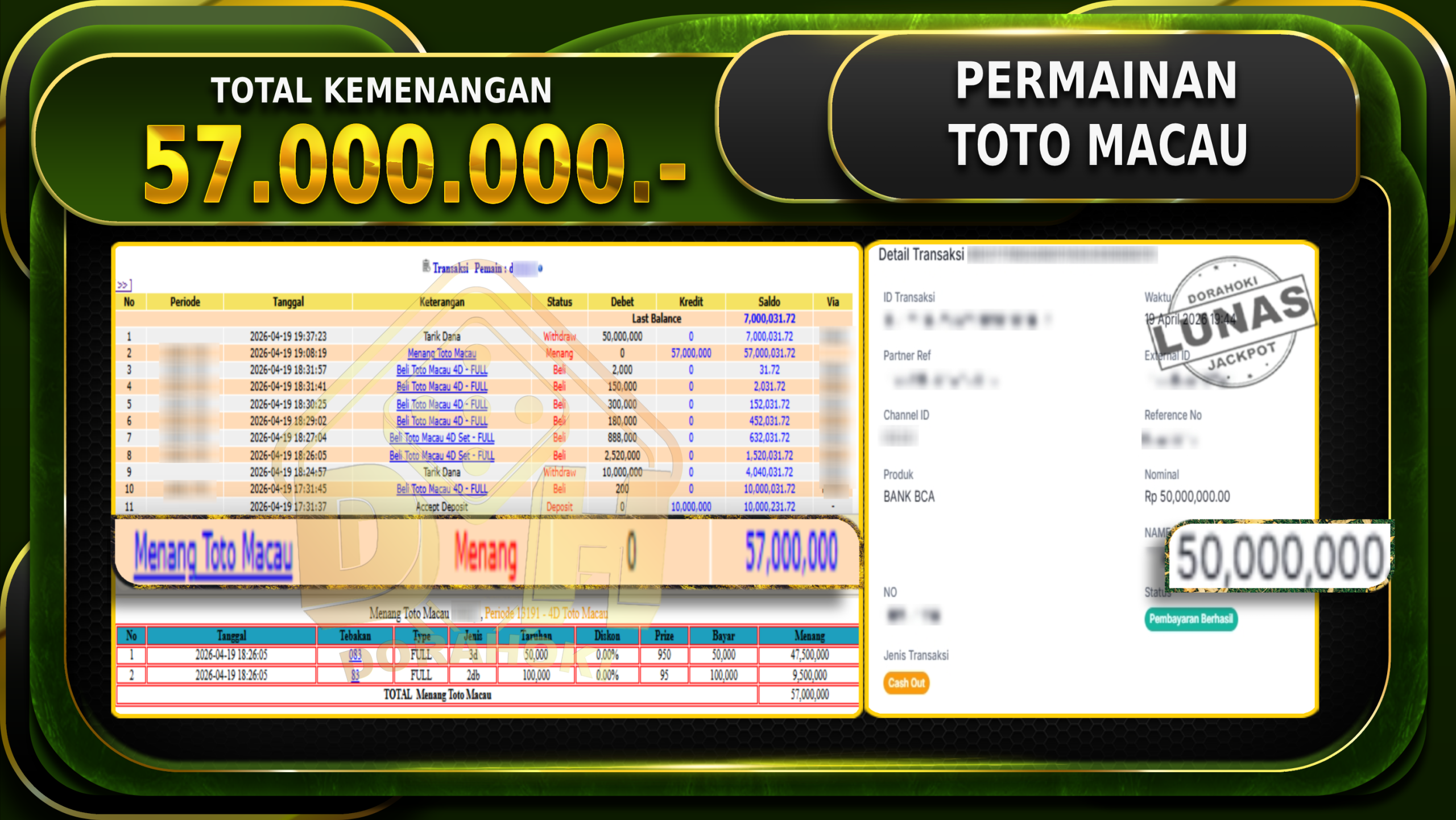Bukti JP TOGEL SYDNEY – ucapkan selamat kepada user id Agoxxx atas kemenangan di TOGEL SYDNEY dengan total kemenangan Rp.28.050.000,- . Yang pasti nya langsung LUNAS sesuai bukti ya bosku. Dorahoki nih bosku berapapun akan tetap kami bayar lunas ya bosku.