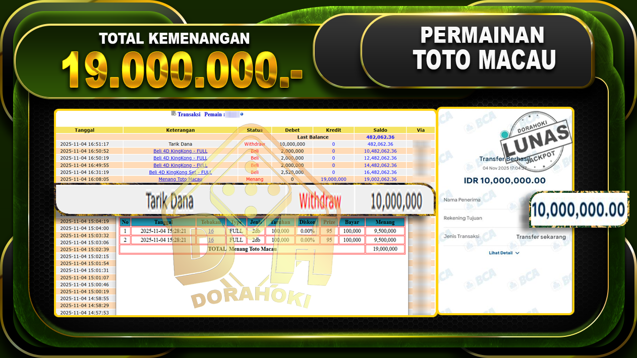DORAHOKI NIH BOSKU! MENANG BERAPAPUN PASTI KAMI BAYAR LUNAS!!