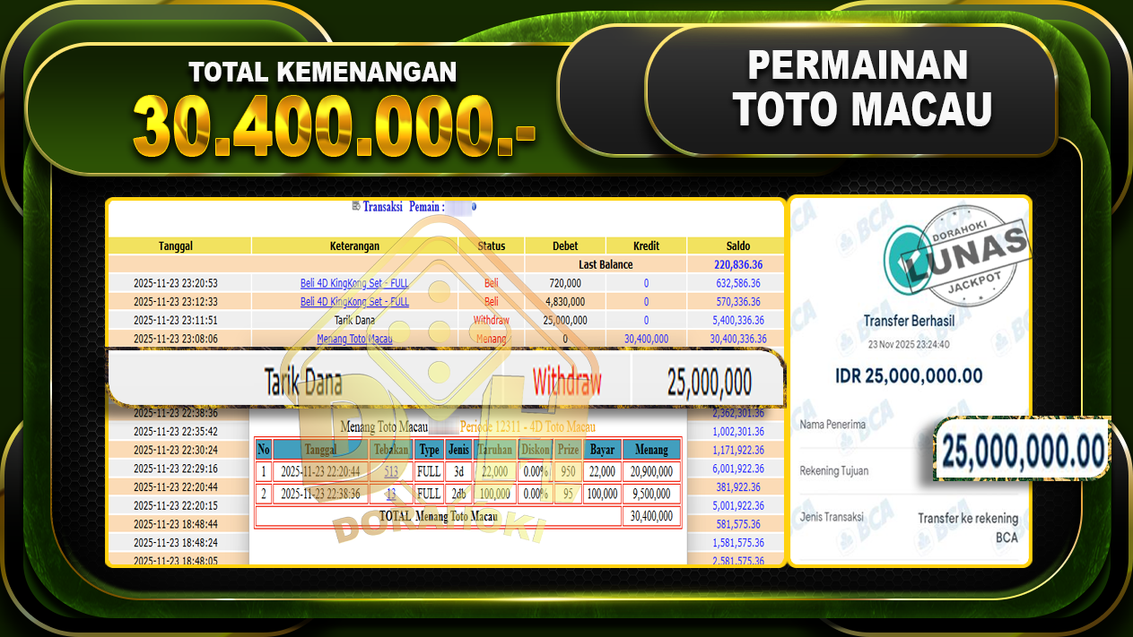 Bukti JP TOGEL TOTO MACAU 4D – ucapkan selamat kepada user id busxx atas kemenangan di TOGEL TOTO MACAU 4D dengan total kemenangan Rp.30,400,000,- Yang pasti nya langsung LUNAS sesuai bukti ya bosku. Dorahoki nih bosku berapapun akan tetap kami bayar lunas ya bosku