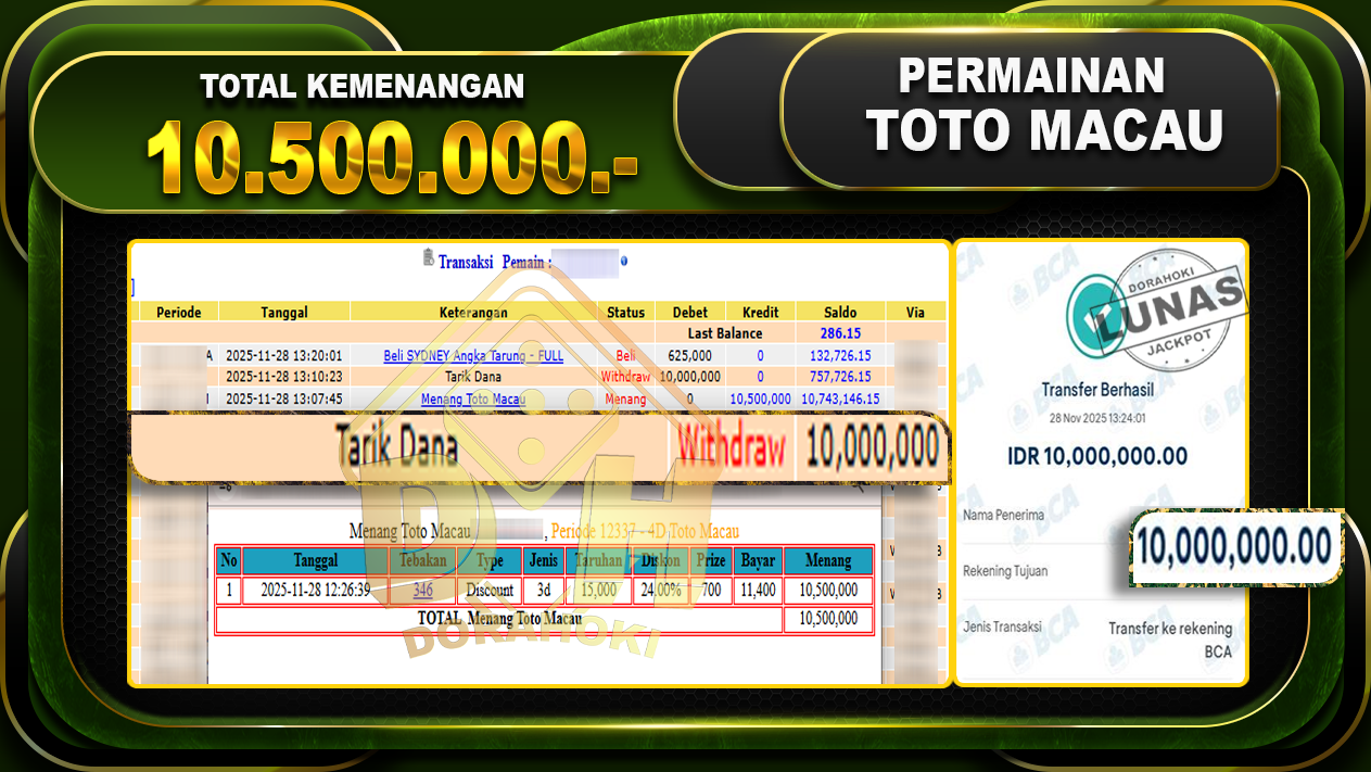 DORAHOKI NIH BOSKU! MENANG BERAPAPUN PASTI KAMI BAYAR LUNAS!!