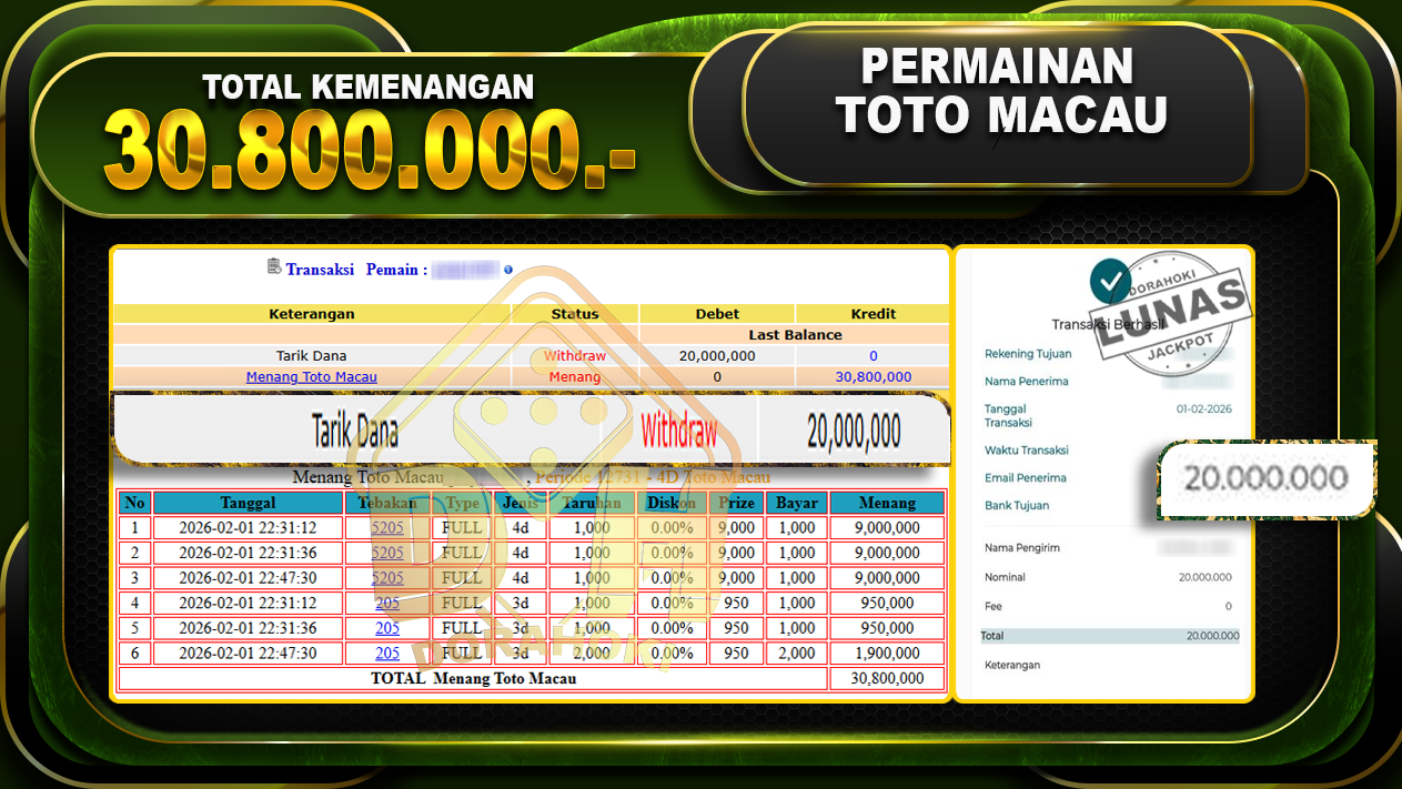 Bukti JP TOGEL TOTO MACAU– Yang kami berikan ini sah dan real tanpa di rekayasa bosku dan hanya bertujuan untuk meningkatkan kepercayaan member kami dan memberikan kenyamanan saat bermain jadi bosku tidak perlu khawatir MENANG BERAPAPUN PASTI KAMI BAYAR LUNAS!!
