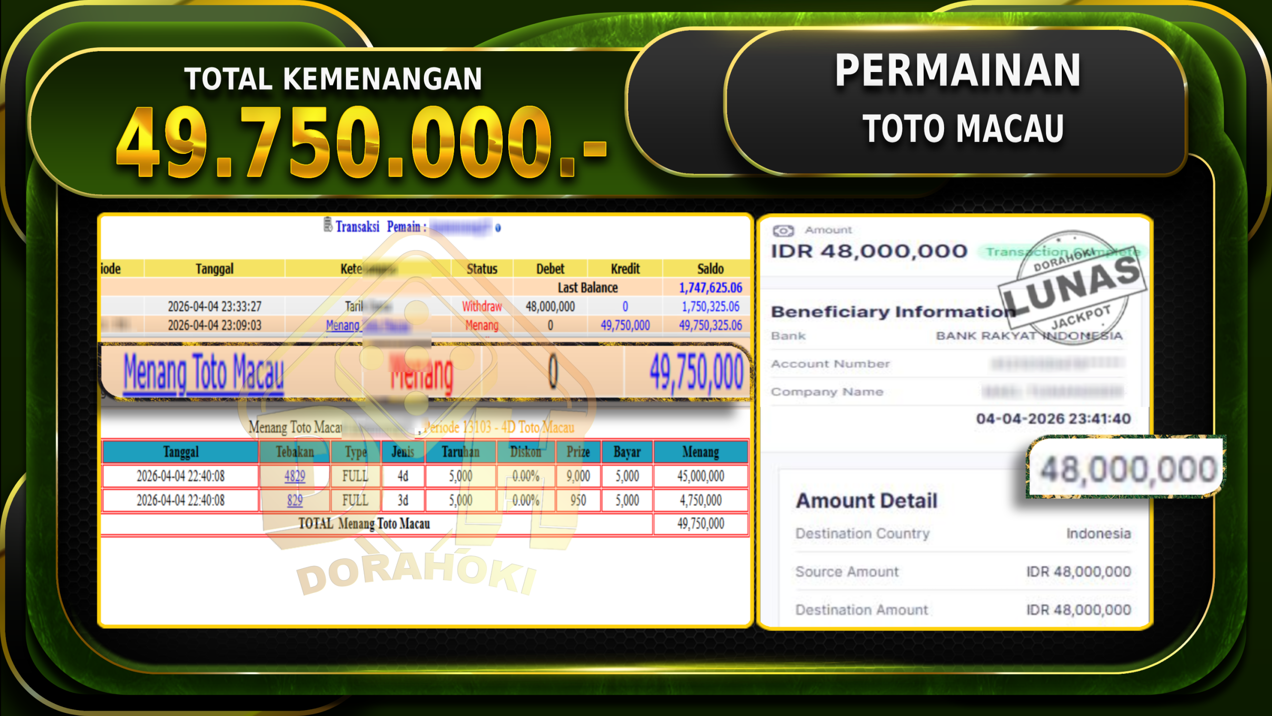 Kemenangan Berapapun Situs DoraHoki Akan Membayar Lunas ya