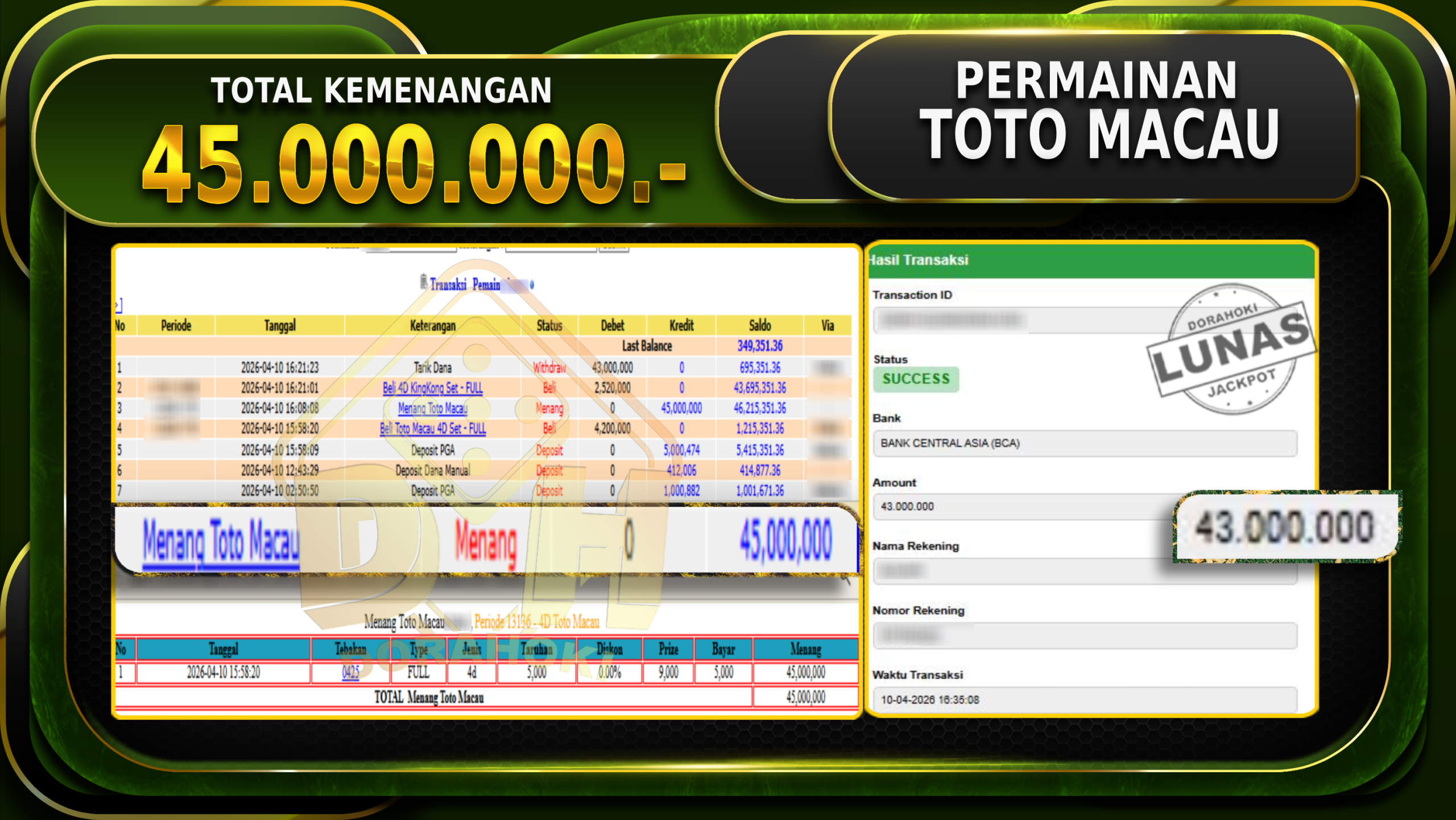 DORAHOKI NIH BOSKU! MENANG BERAPAPUN PASTI KAMI BAYAR LUNAS!!