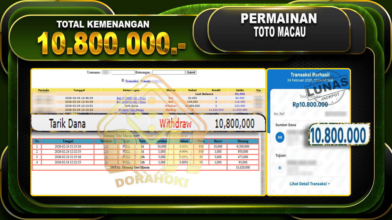 DORAHOKI NIH BOSKU! MENANG BERAPAPUN PASTI KAMI BAYAR LUNAS!!