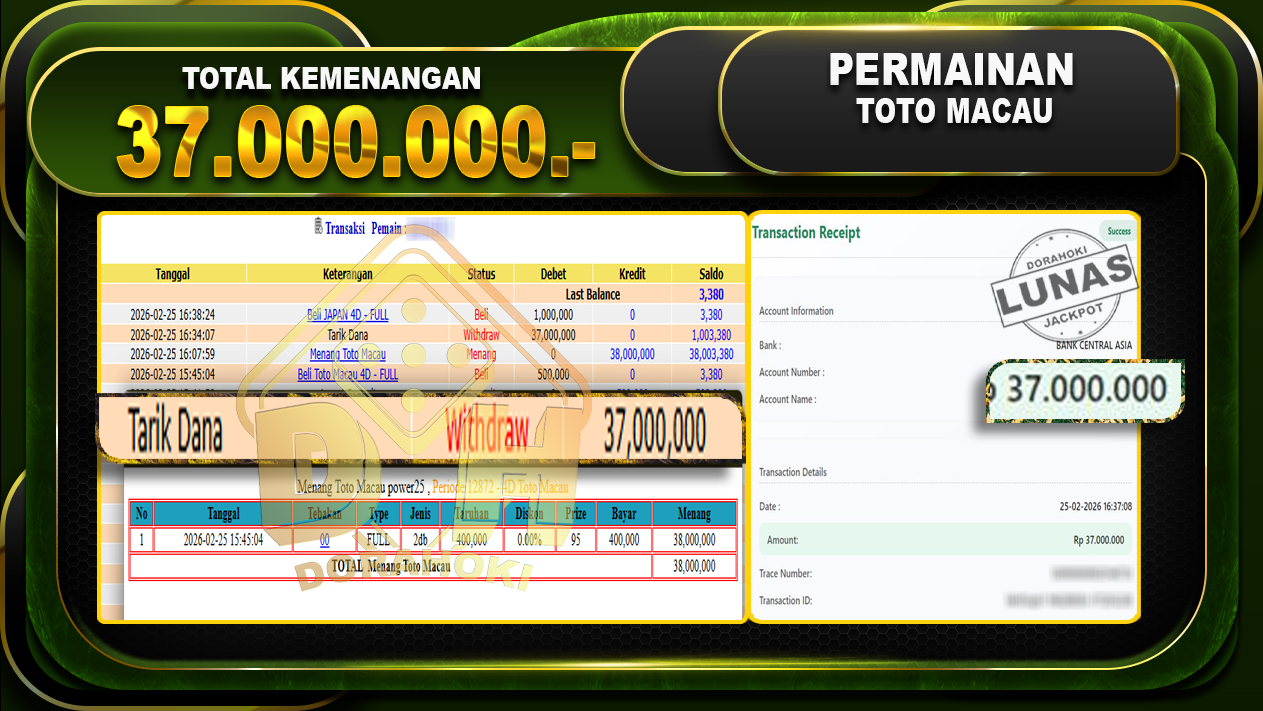 TOGEL TOTO MACAU – DORAHOKI 25 Februari 2026