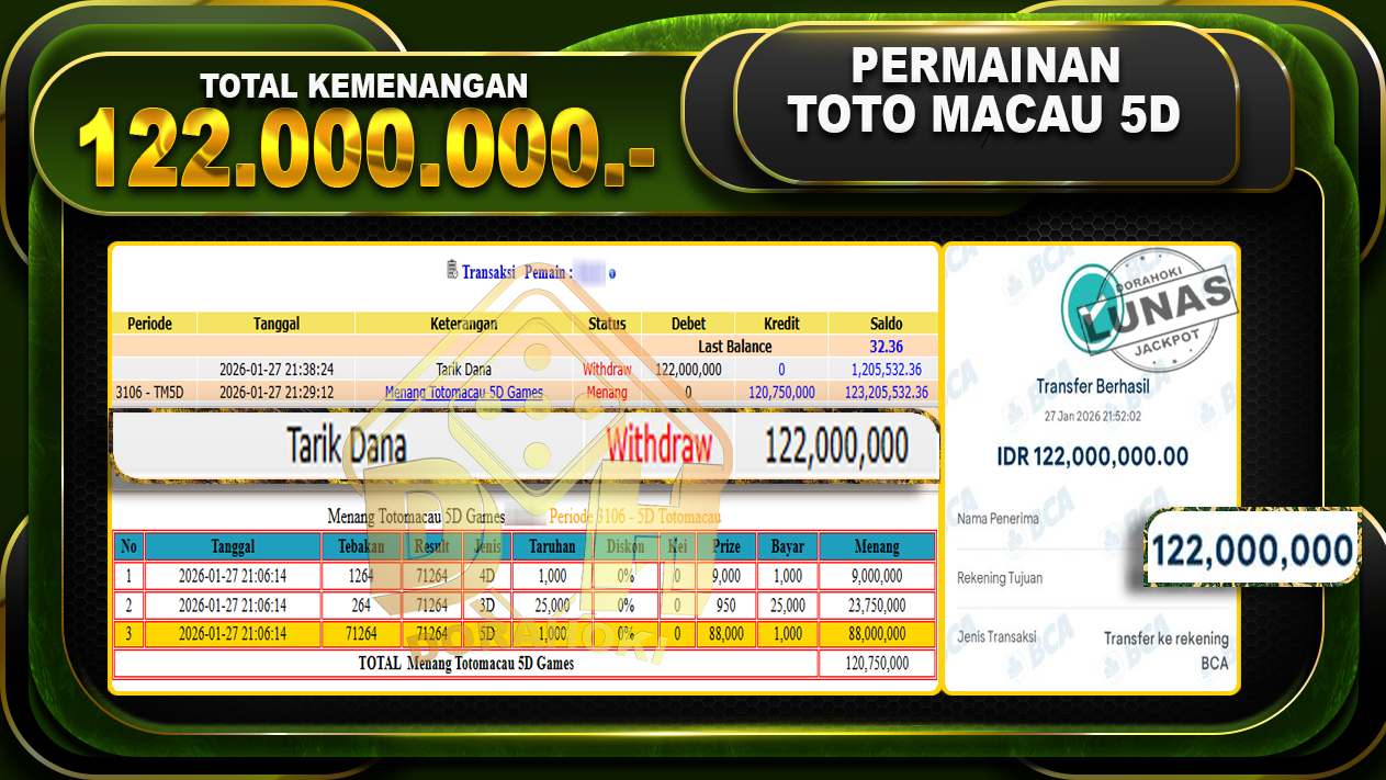 Bukti JP TOGEL TOTO MACAU– Yang kami berikan ini sah dan real tanpa di rekayasa bosku dan hanya bertujuan untuk meningkatkan kepercayaan member kami dan memberikan kenyamanan saat bermain jadi bosku tidak perlu khawatir MENANG BERAPAPUN PASTI KAMI BAYAR LUNAS!!
