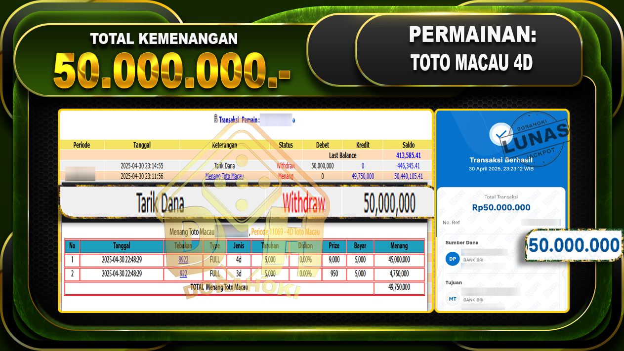 DORAHOKI NIH BOSKU! MENANG BERAPAPUN PASTI KAMI BAYAR LUNAS!!