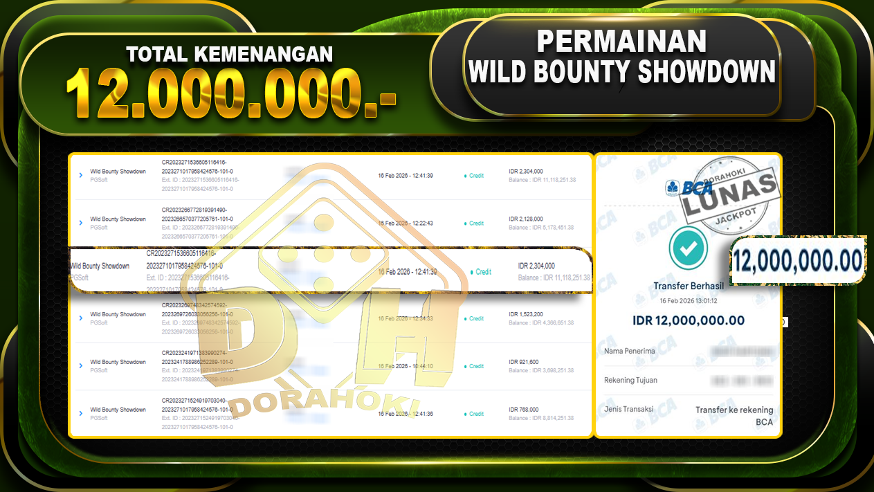 Bukti JP Wild Bandito Showdown – ucapkan selamat kepada user id Samxx atas kemenangan di Wild Bandito dengan total kemenangan Rp.12.000.000.- Yang pasti nya langsung LUNAS sesuai bukti ya bosku. Dorahoki nih bosku berapapun akan tetap kami bayar lunas ya bosku.