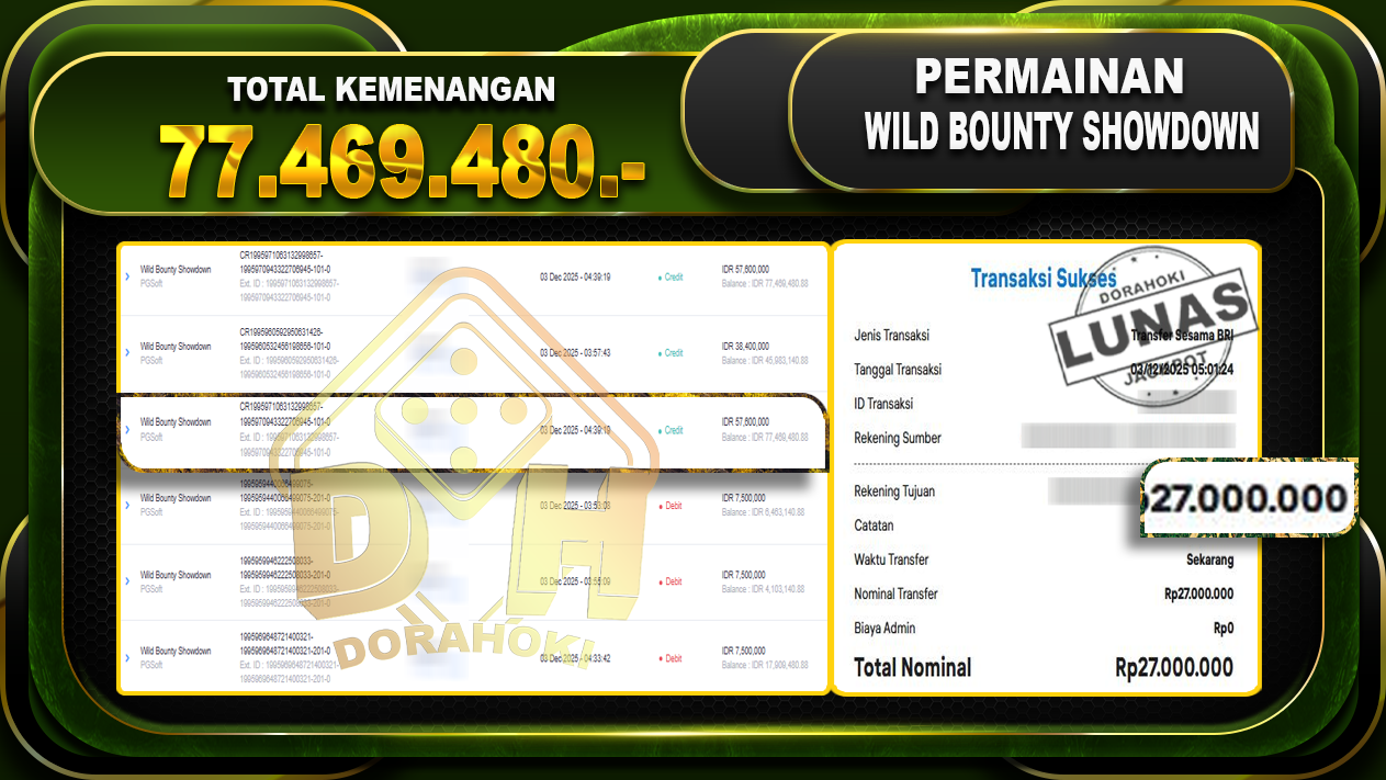 Bukti JP Wild Bounty Showdown – ucapkan selamat kepada user id jiwxxxxx atas kemenangan di Wild Bounty Showdown dengan total kemenangan Rp.77.469.480,- Yang pasti nya langsung LUNAS sesuai bukti ya bosku. Dorahoki nih bosku berapapun akan tetap kami bayar lunas ya bosku