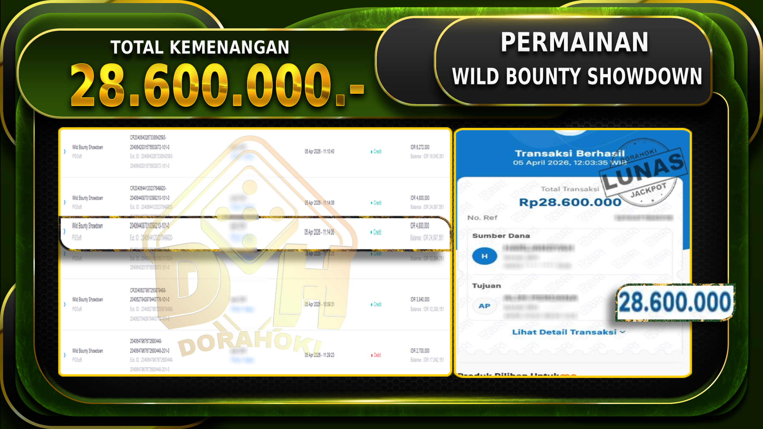 Bukti JP Wild Bounty Showdown – Selamat Kepada User id setxxx atas kemenangan Wild Bounty Showdown Dengan Nominal Sebesar Rp.28,600,000,- Yang pasti nya langsung LUNAS Sesuai Bukti.