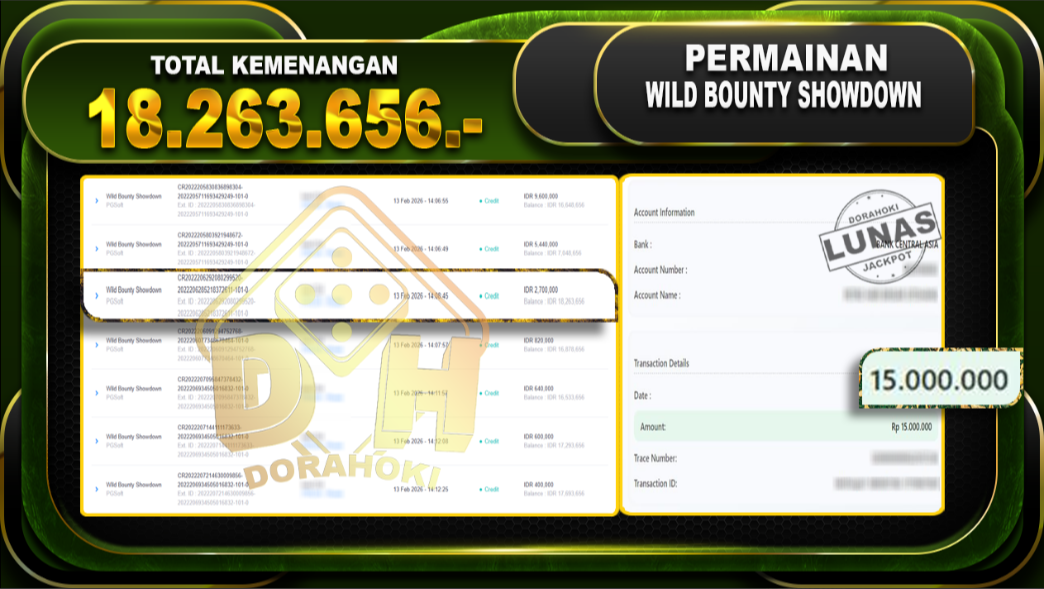 Bukti JP Wild Bounty Showdown – Selamat Kepada User id Bawxxx atas kemenangan Wild Bounty Showdown Dengan Nominal Sebesar Rp.18,263,656,- Yang pasti nya langsung LUNAS Sesuai Bukti.