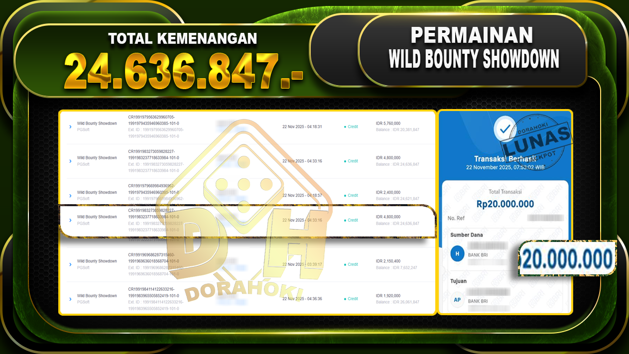 Bukti JP Wild Bounty Showdown – ucapkan selamat kepada user id setxxxxx atas kemenangan di Wild Bounty Showdown dengan total kemenangan Rp.24.636.847,- Yang pasti nya langsung LUNAS sesuai bukti ya bosku. Dorahoki nih bosku berapapun akan tetap kami bayar lunas ya bosku