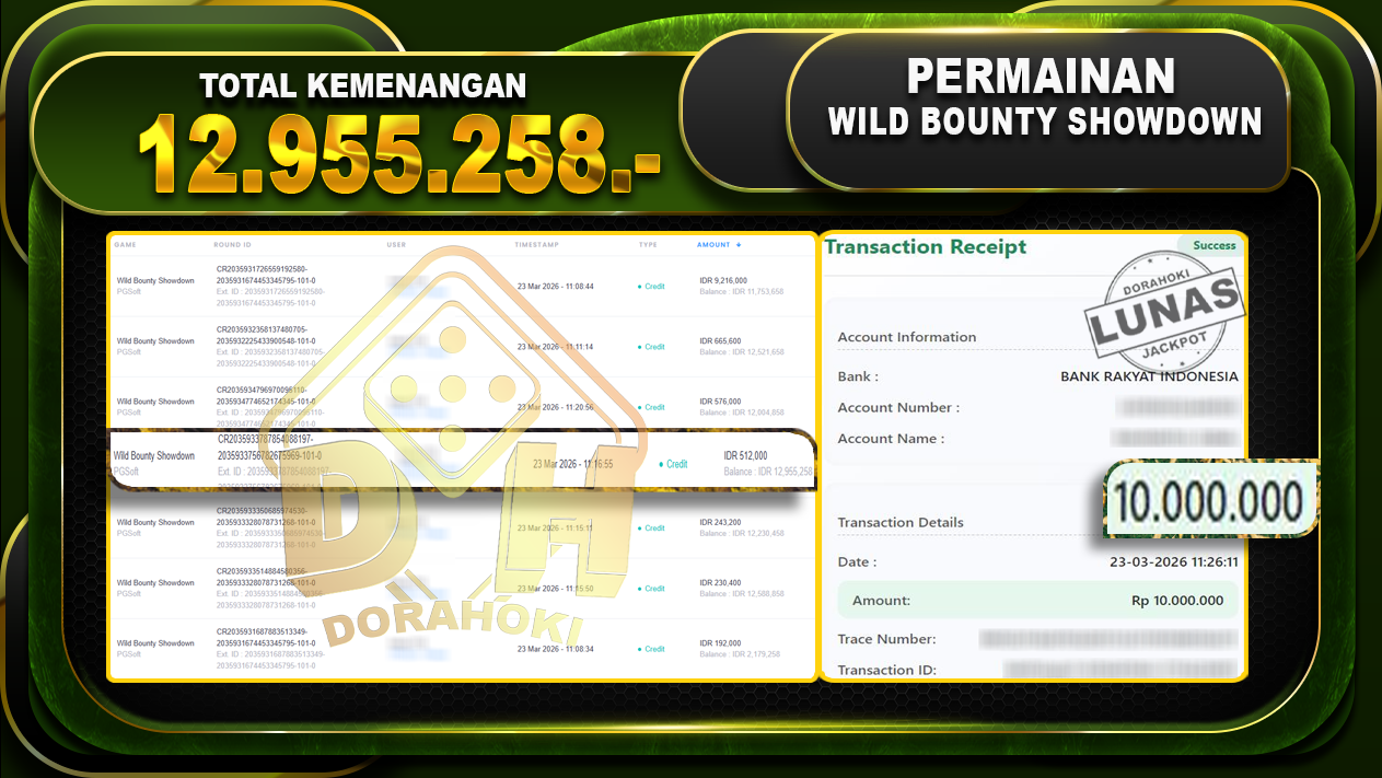Bukti JP Wild Bounty Showdown – Selamat Kepada User id Kobxxx atas kemenangan Wild Bounty Showdown Dengan Nominal Sebesar Rp.12.955.258,- Yang pasti nya langsung LUNAS Sesuai Bukti.