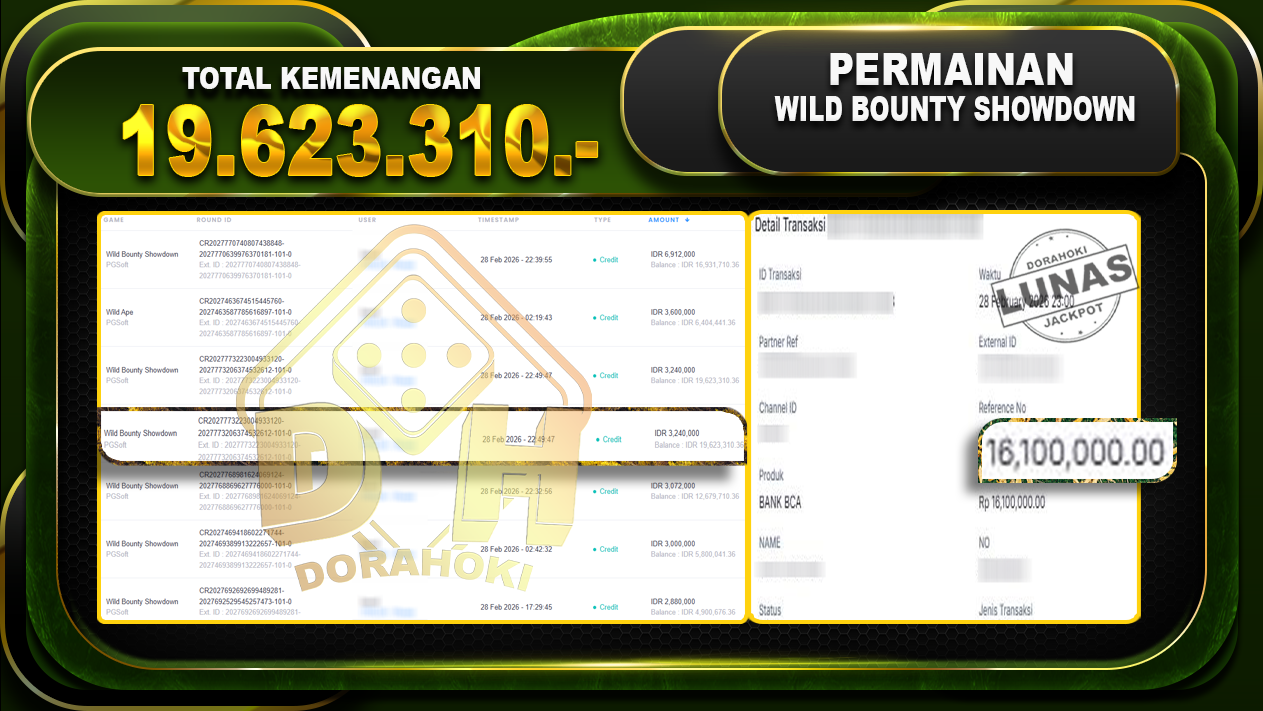Bukti JP Wild Bounty Showdown – Selamat Kepada User id Bawxxx atas kemenangan Wild Bounty Showdown Dengan Nominal Sebesar Rp.19.623.310,- Yang pasti nya langsung LUNAS Sesuai Bukti.