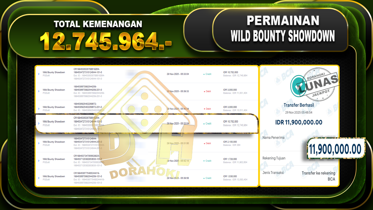 Bukti JP Wild Bounty Showdown – ucapkan selamat kepada user id hidxxxxx atas kemenangan di Wild Bounty Showdown dengan total kemenangan Rp.12.745.964,- Yang pasti nya langsung LUNAS sesuai bukti ya bosku. Dorahoki nih bosku berapapun akan tetap kami bayar lunas ya bosku