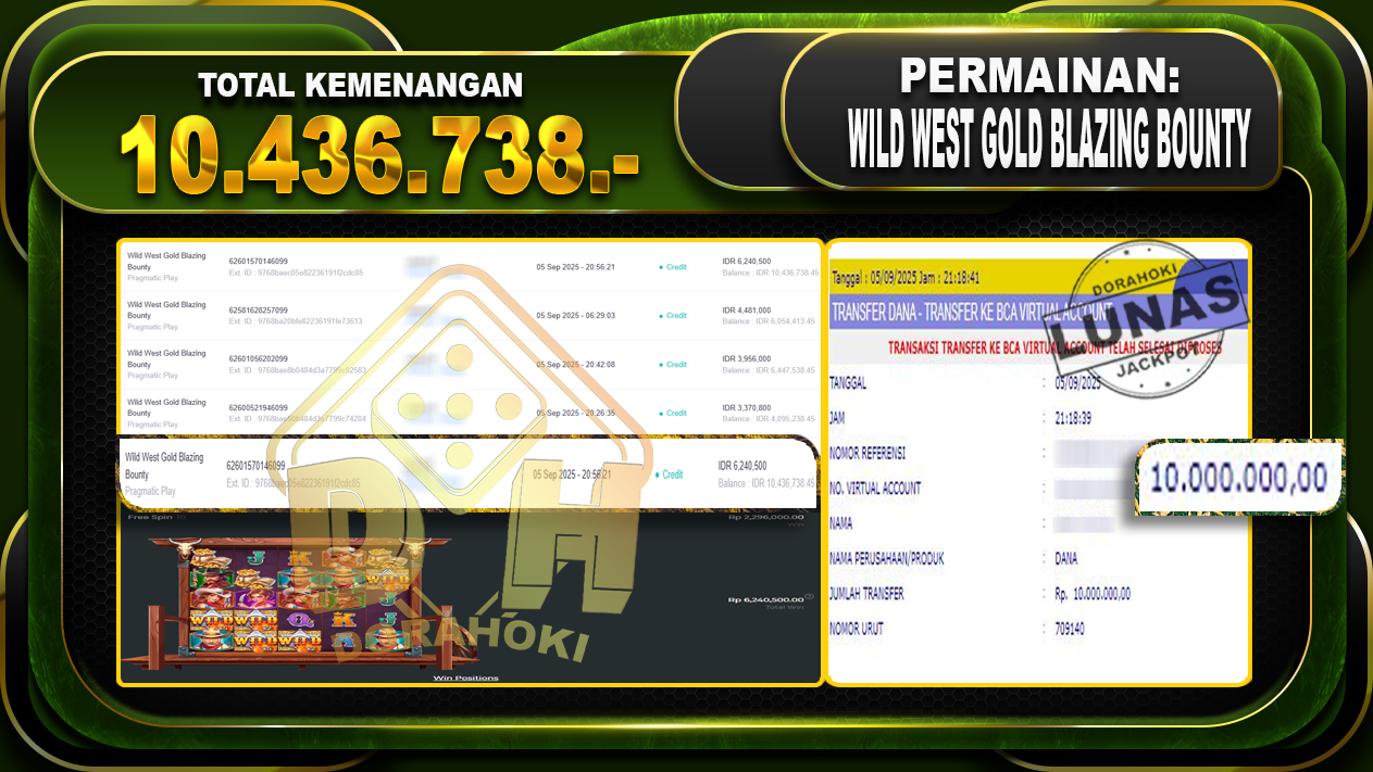 Bukti JP Wild west gold blazing bounty – Yang kami berikan ini sah dan real tanpa di rekayasa bosku dan hanya bertujuan untuk meningkatkan kepercayaan member kami dan memberikan kenyamanan saat bermain jadi bosku tidak perlu khawatir MENANG BERAPAPUN PASTI KAMI BAYAR LUNAS!!