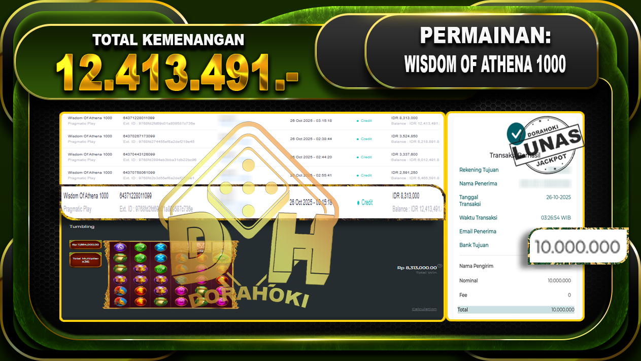 Bukti JP Wisdom Of Athena 1000 – ucapkan selamat kepada user id dorxxxxx atas kemenangan di Wisdom Of Athena 1000 dengan total kemenangan Rp.12.413.491,- Yang pasti nya langsung LUNAS sesuai bukti ya bosku. Dorahoki nih bosku berapapun akan tetap kami bayar lunas ya bosku